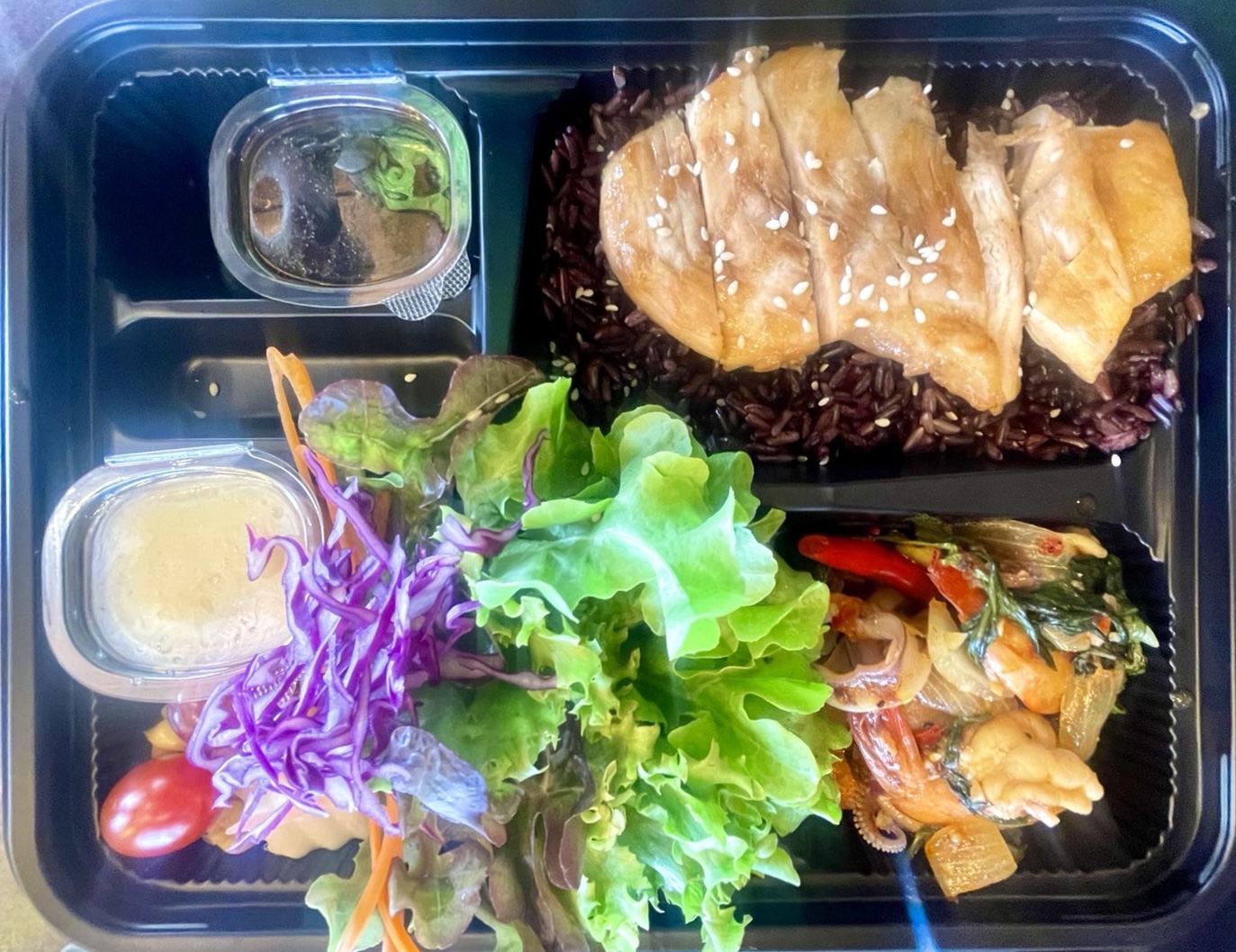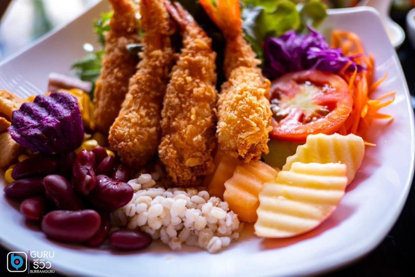 สลัดผักรวมธัญพืชกุ้งเทมปุระ