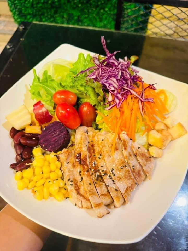 สลัดผักรวมธัญพืช อกไก่ย่าง