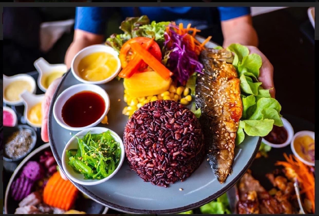 ข้าวปลาซาบะเทริยากิ ข้าวไรซ์เบอรรี่